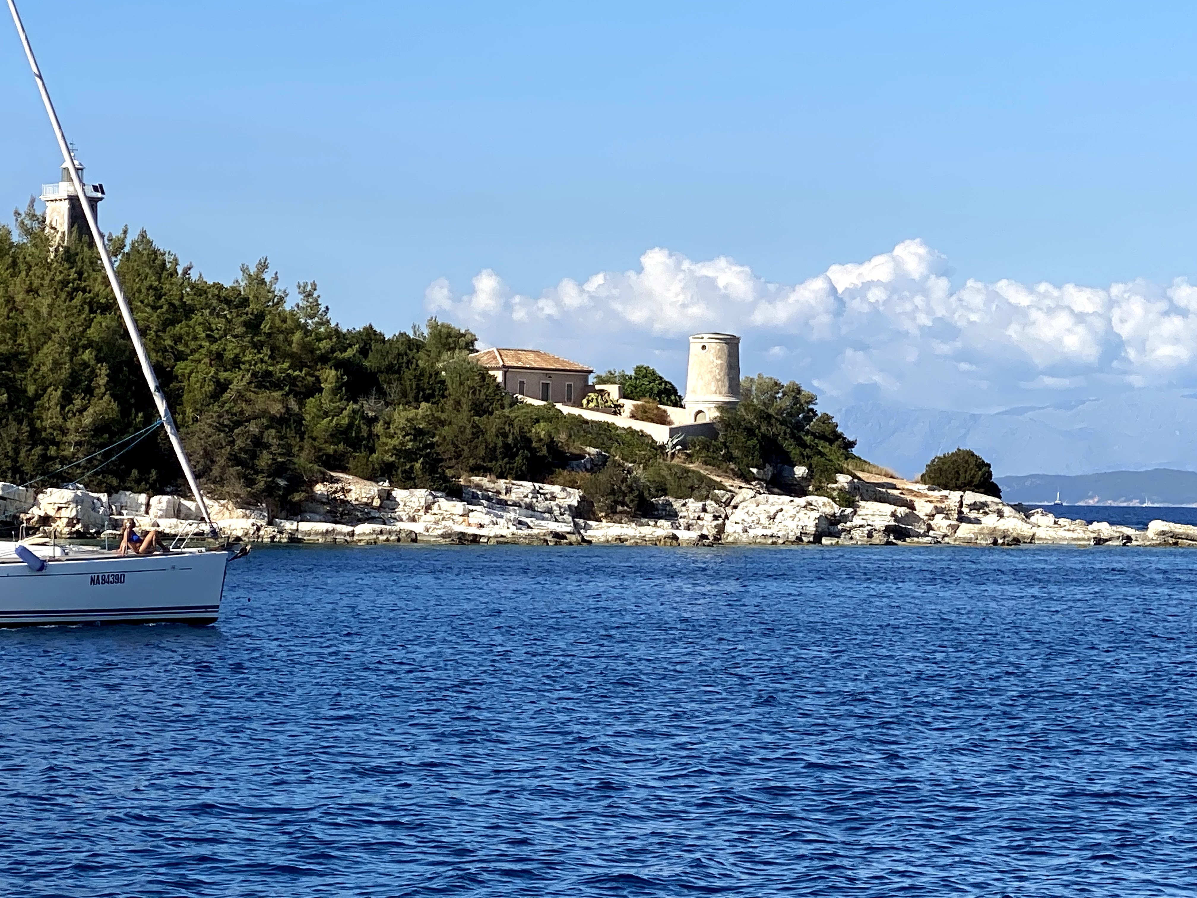 We left Meganisi the next morning and mostly motored to Kefalonia where we are now. We are anchored in Fiskardo Bay, which is apparently the place to be in Kefalonia and it is very beautiful and picturesque. There looks to be a 60+m ketch rigged sailboat anchored further out in the bay. It is huge! (I just looked it up with MarineTraffic: Sailboat flagged in the Marshall Islands (didn’t recognize the flag) and it is 68.36m long with a beam of 12.54m. It is a monster. It didn’t give me the boat name for some reason I think it usually does so maybe it is someone famous. If I find out I’ll report.
