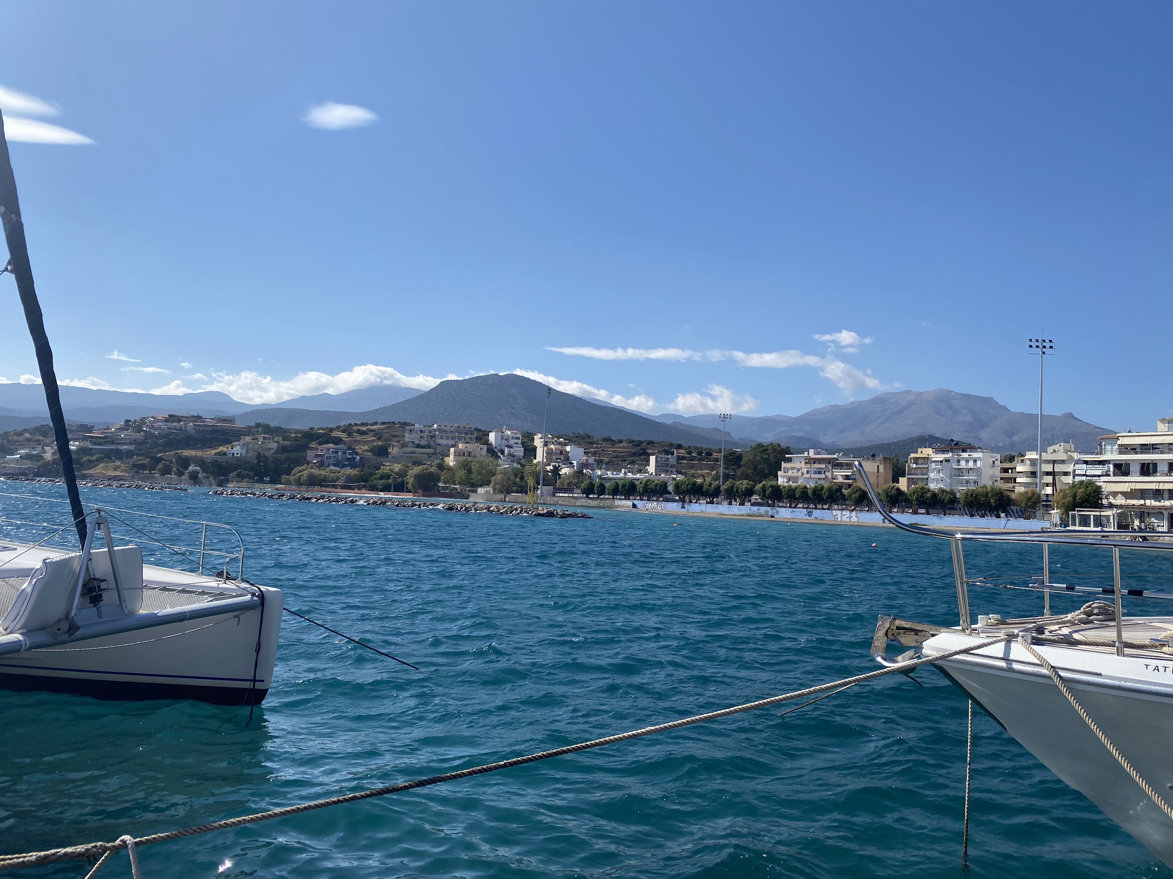 We had a travel adventure getting back, but money and an extra day of travel solved the issue. Now we are back in Agios Nikolaos. I really love it here. We are surrounded by mountains, the town is not too small or big and is right around the marina.