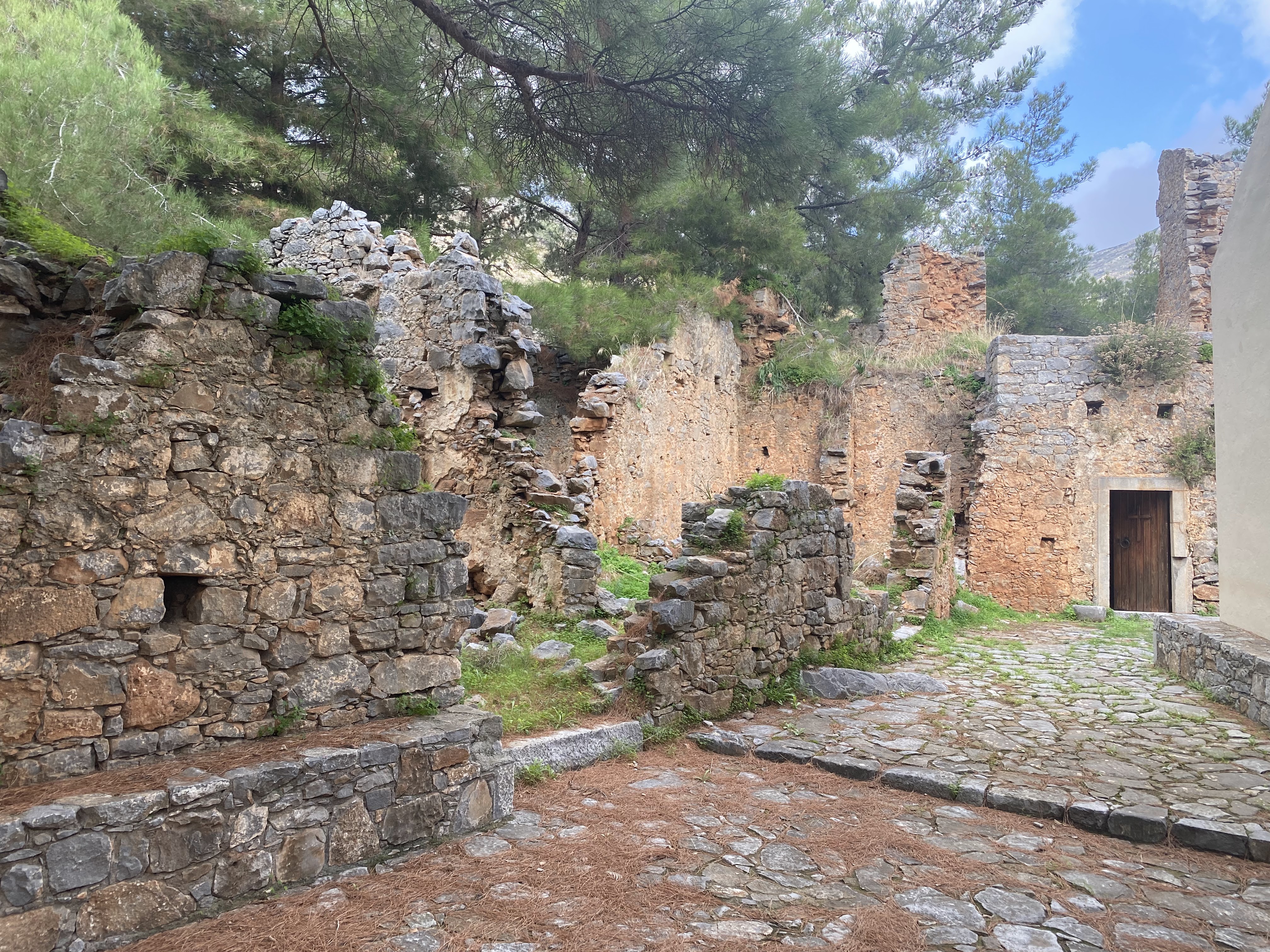 Picture above is outside a church closed around 1900. The structure with a door on the right is still used as a religious retreat.